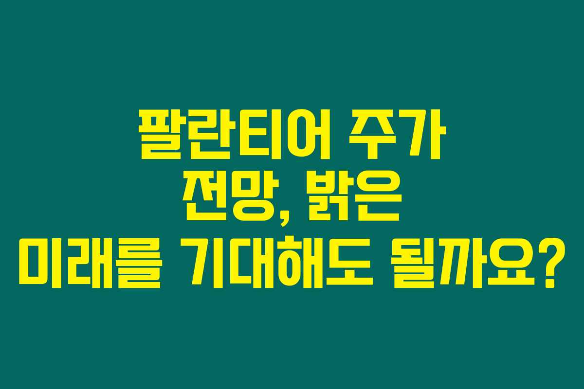 제가 알아본 바로는, 팔란티어는 데이터 분석 및 인공지능 분야의 혁신을 선도하는 기업으로, 많은 투자자들에게 주목받고 있는 기업입니다. 그러나 팔란티어 주가 전망이 과연 밝은 것은 아닐까 하는 의구심도 함께 존재합니다. 아래를 읽어보시면 팔란티어의 현재 상황, 미래 전망, 그리고 적절한 투자 전략에 대해 상세하게 알아보실 수 있습니다.