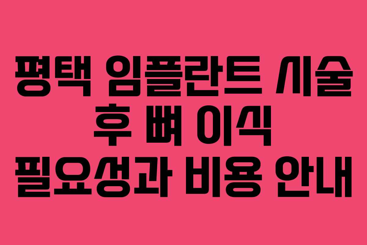 임플란트 시술은 많은 준비와 주의가 필요한 과정입니다. 특히, 평택 지역에서의 다양한 치과와 가격 정보를 잘 알고, 개인의 상태에 맞는 최적의 선택을 하는 것이 중요합니다. 제가 경험한 바에 따르면, 사전 상담을 통해 충분한 정보를 얻고, 자신의 치아 건강을 위한 현명한 결정을 내리는 것이 무엇보다 중요합니다. 임플란트 시술 후 뼈 이식이 필요한 경우에도 충분한 정보를 통해 신뢰할 수 있는 선택을 하시길 바랍니다.