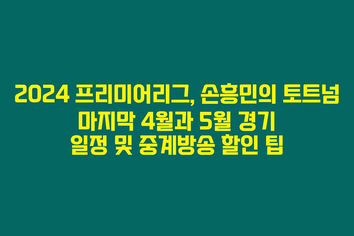 2024년 4월과 5월, 손흥민 선수의 토트넘 홋스퍼 경기 일정이 기대되는 이때! 아래를 읽어보시면 손흥민 선수의 경기 일정과 중계 방송에 대한 유용한 정보를 확인할 수 있습니다. 손흥민 선수가 축구 팬들에게 멋진 순간들을 선사할 이 두 달 동안의 일정을 함께 살펴볼까요?