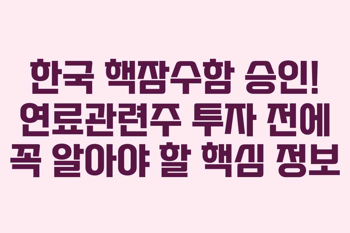 최근 한국 정부가 핵추진 잠수함 건조를 승인하면서 방산 및 조선 산업에 큰 변화가 예상되고 있습니다. 이와 관련하여 주목해야 할 연료관련주에 대해 알아보겠습니다.