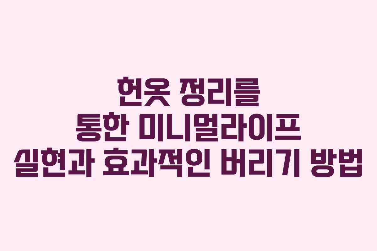 미니멀라이프를 추구하는 과정에서 많은 이들이 가장 먼저 옷 정리를 시작합니다. 옷을 정리하면서 쉽게 버리지 못하는 이유는 헌옷에 담긴 추억, 높은 가격, 그리고 특별한 의미 때문입니다. 그러나 미니멀라이프를 제대로 실현하기 위해서는 헌옷을 효과적으로 처리하는 것이 중요합니다. 이 글에서는 헌옷을 어떻게 효과적으로 정리하고, 기부하거나 판매할 수 있는지에 대해 다루겠습니다.