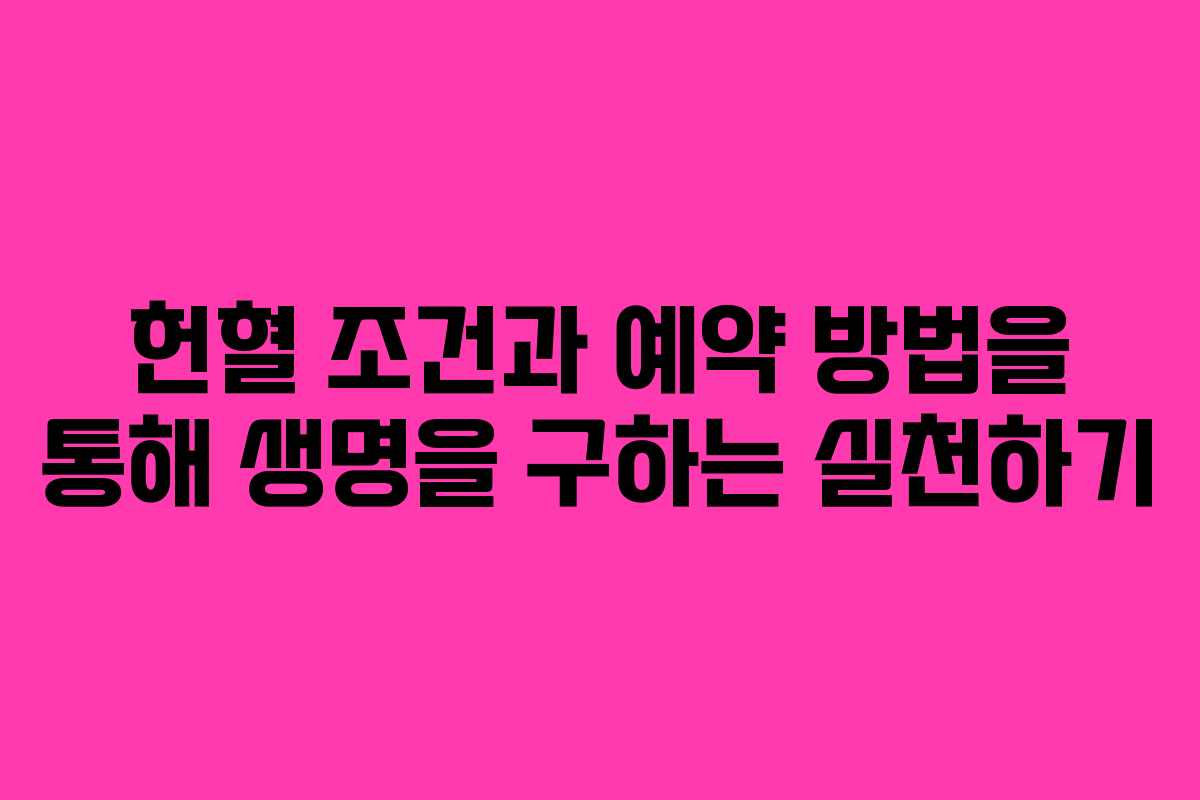 헌혈은 수혈이 필요한 환자에게 생명을 구하는 중요한 행위로, 많은 이들에게 큰 도움이 됩니다. 헌혈을 통해 생명과 희망을 나누는 것은 단순한 행위가 아닌, 누구나 참여할 수 있는 소중한 기회입니다. 본문에서는 헌혈을 위한 조건, 횟수 조회 및 예약 방법에 대해 알아보겠습니다.