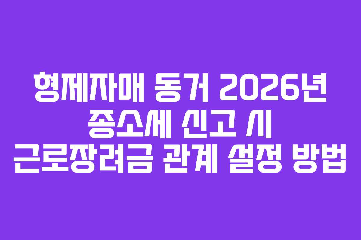 2026년은 형제자매와 동거하는 많은 이들에게 중요한 해가 될 것입니다. 특히, 근로장려금 신청과 종합소득세 신고가 변화하면서, 이와 관련된 정확한 정보가 필요합니다. 저는 형제자매와 함께 동거하며 이 과정을 직접 경험한 후, 많은 어려움과 고민을 겪었습니다. 이러한 경험을 바탕으로 이번 글에서는 형제자매 동거 시 근로장려금과 종합소득세 신고를 어떻게 해야 하는지, 그리고 그 과정에서 주의해야 할 점들을 정리해보겠습니다.