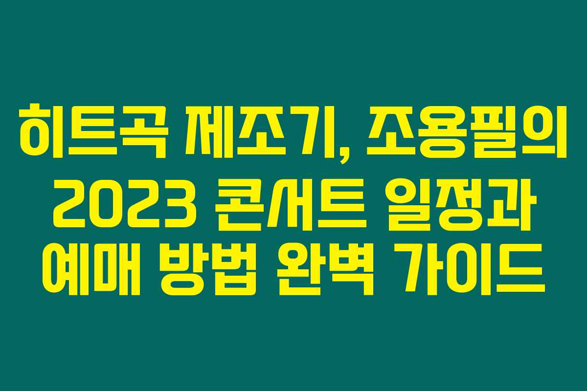 영원한 가왕, 조용필의 2023년 콘서트 소식에 많은 팬들이 뜨거운 관심을 보이고 있습니다. 그가 그동안 만들어온 히트곡들을 라이브로 실감하며 즐길 수 있는 기회는 정말 특별하죠. 아래를 읽어보시면, 조용필의 2023 콘서트 일정과 예매 방법에 대한 모든 정보를 알차게 정리해 드리겠습니다.