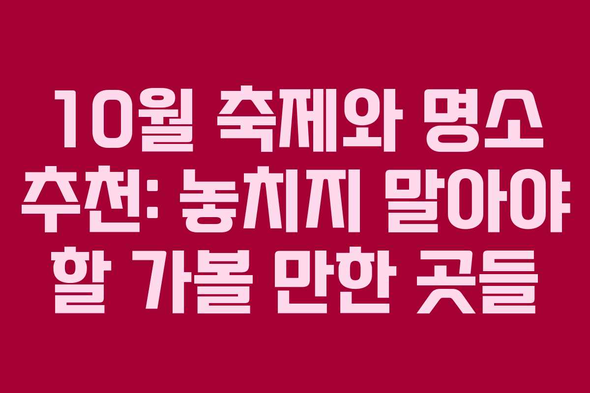 10월은 여행과 축제의 계절로, 아름다운 가을 풍경을 만끽할 수 있는 시기이다. 이 시기에는 다양한 축제와 특별한 명소들이 있어 많은 이들이 찾는다. 2026년 현재, 이 시기에 특히 주목할 만한 장소와 축제를 정리해 보았다.