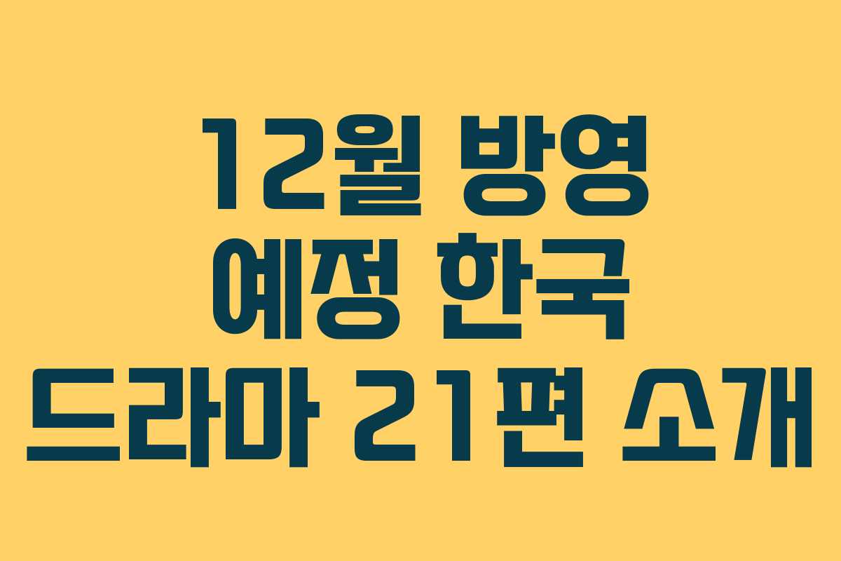 2025년 마지막 달인 12월, 많은 새로운 한국 드라마가 시청자들을 만날 준비를 하고 있습니다. 총 21편의 드라마가 방송될 예정으로, 유명 배우들이 대거 출연하는 만큼 기대를 모으고 있습니다. 이번 글에서는 12월에 공개될 드라마의 주요 내용을 소개합니다.