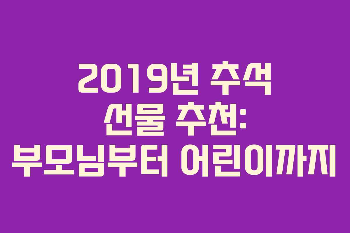 2019년 추석은 9월 12일부터 15일까지 4일간의 연휴로, 가족과 소중한 분들에게 감사의 마음을 전하기 좋은 기회입니다. 이번 포스트에서는 부모님, 어린이집 선생님, 시댁, 친구의 부모님을 위한 센스 있는 추석 선물을 추천합니다.