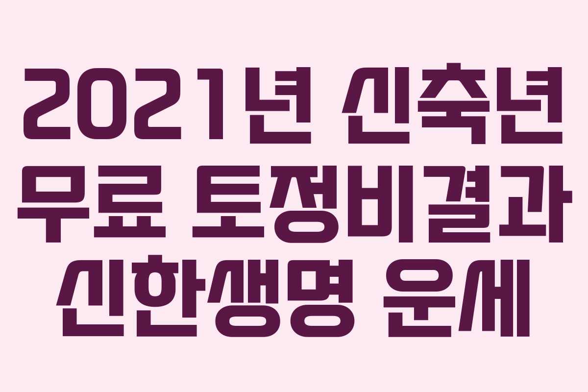 신축년을 맞아 신한생명에서 제공하는 무료 토정비결과 운세를 통해 2021년의 운세를 전망해보겠습니다. 이 글에서는 총론, 재물운, 직장 및 사업운, 가족 및 애정운 등의 내용을 살펴보고, 신한생명의 특징과 서비스를 안내합니다.