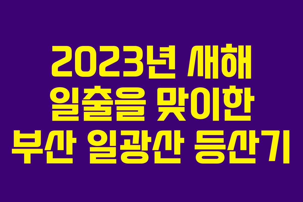 2023년 새해를 맞이하여 일출을 보기 위해 부산 일광산으로의 등산을 다녀온 경험을 공유합니다. 작년에는 친구들이 가는 일출을 놓쳐 아쉬움이 남았던 기억이 있어, 올해는 꼭 가고 싶었습니다.