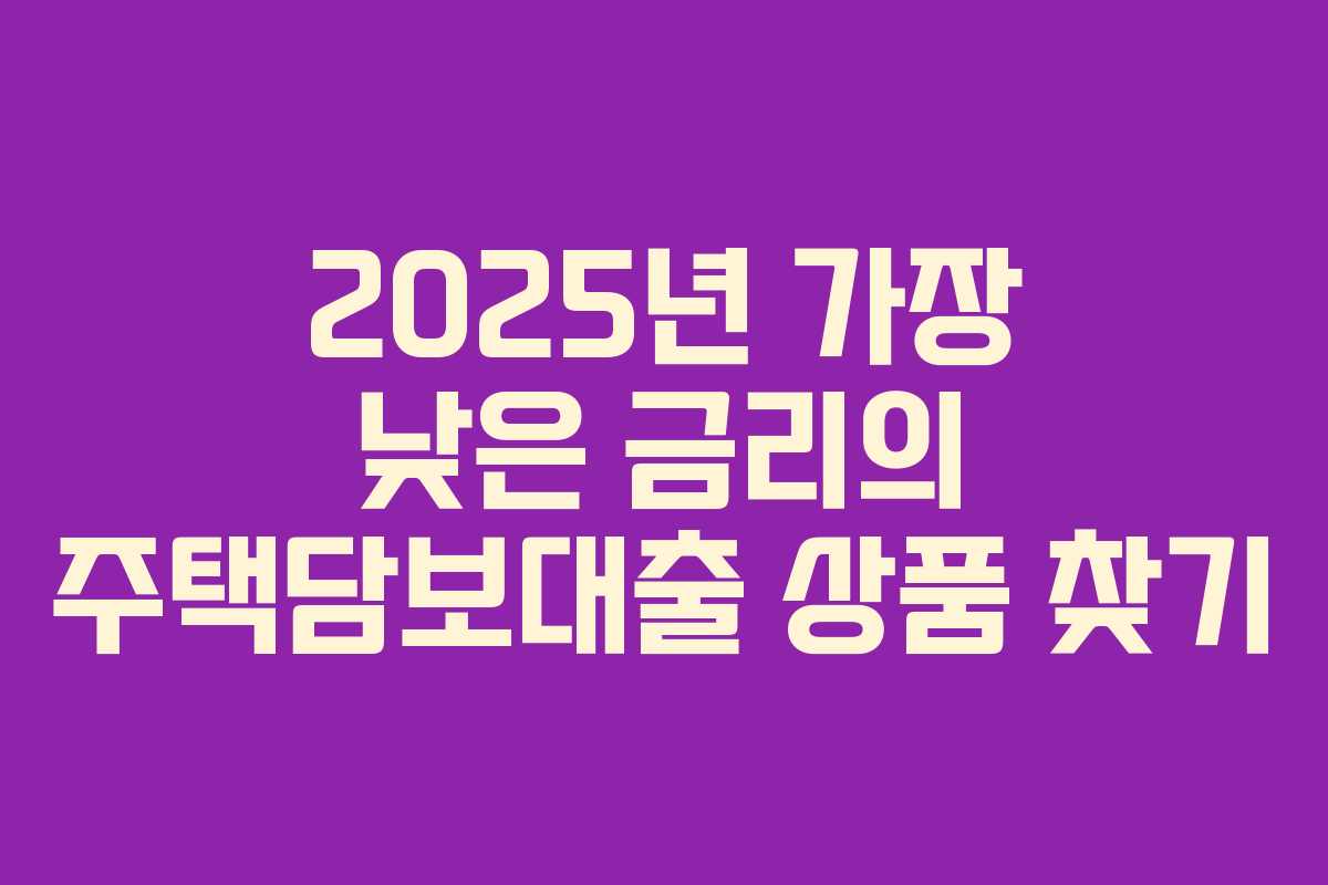 2025년 주택담보대출 시장에서 가장 낮은 금리의 상품을 찾는 방법과 관련 정보를 제공합니다. 주택담보대출은 주택을 담보로 하여 금융기관에서 자금을 빌리는 중요한 금융 상품입니다. 주택 소유자들에게 자금을 필요로 할 때 유용한 옵션으로, 주택 구매나 리모델링에 자주 활용됩니다.