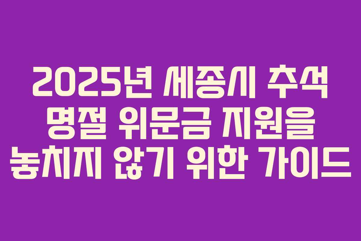 2025년 세종시의 명절 위문금 지원은 특정 대상자에게 지급된다. 주요 대상은 다음과 같다.