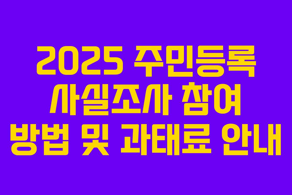 2025년 주민등록 사실조사는 2025년 7월 21일부터 10월 23일까지 진행되며, 두 가지 방식으로 나누어 실시됩니다.