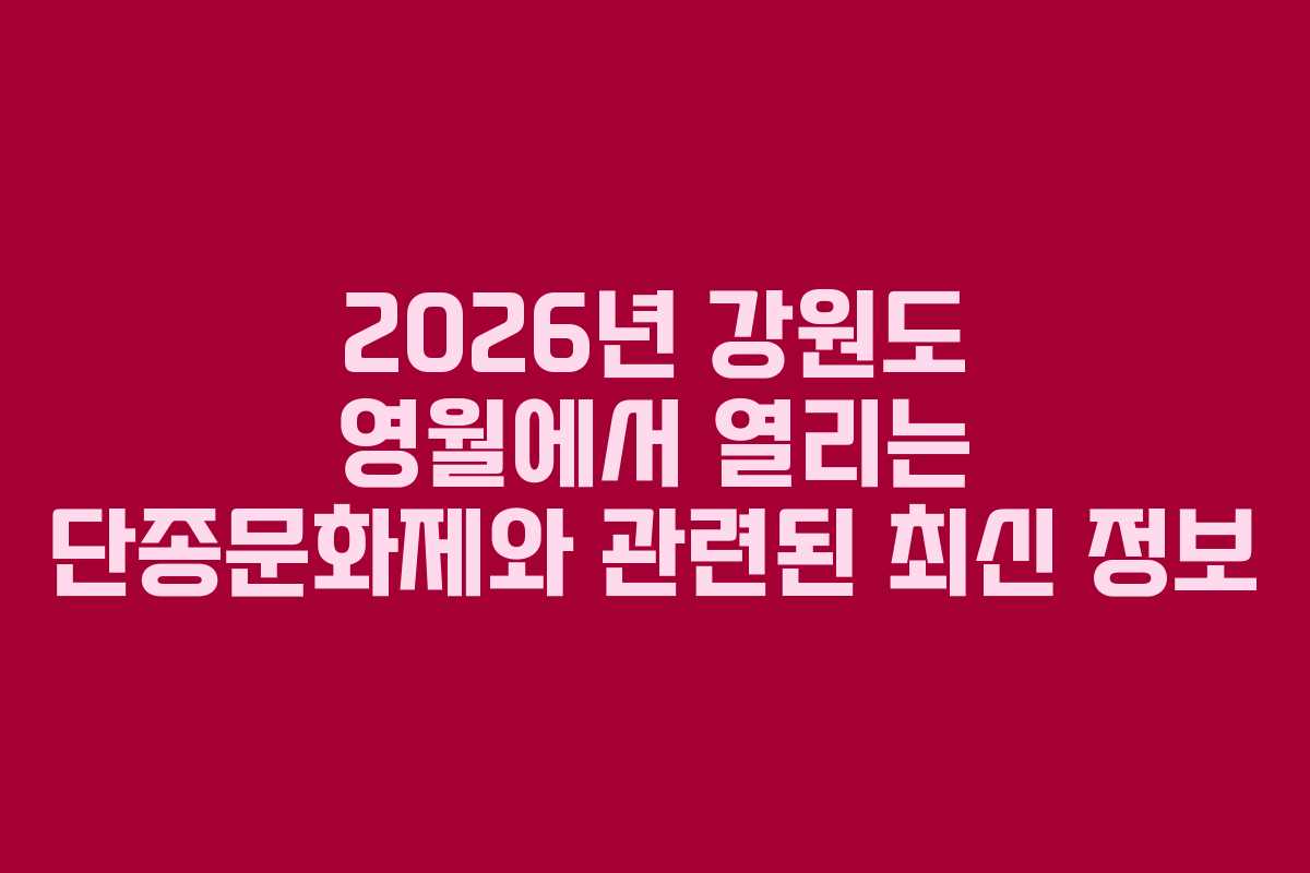 강원도 영월에서는 매년 열리는 단종문화제가 2026년에도 성대하게 개최됩니다. 이 축제는 한국의 역사와 전통을 기리기 위해 마련된 행사로, 다양한 프로그램과 문화 체험이 마련되어 있습니다. 많은 방문객들이 이 특별한 행사를 통해 한국의 전통 문화를 경험하고 즐길 수 있는 기회를 제공합니다.