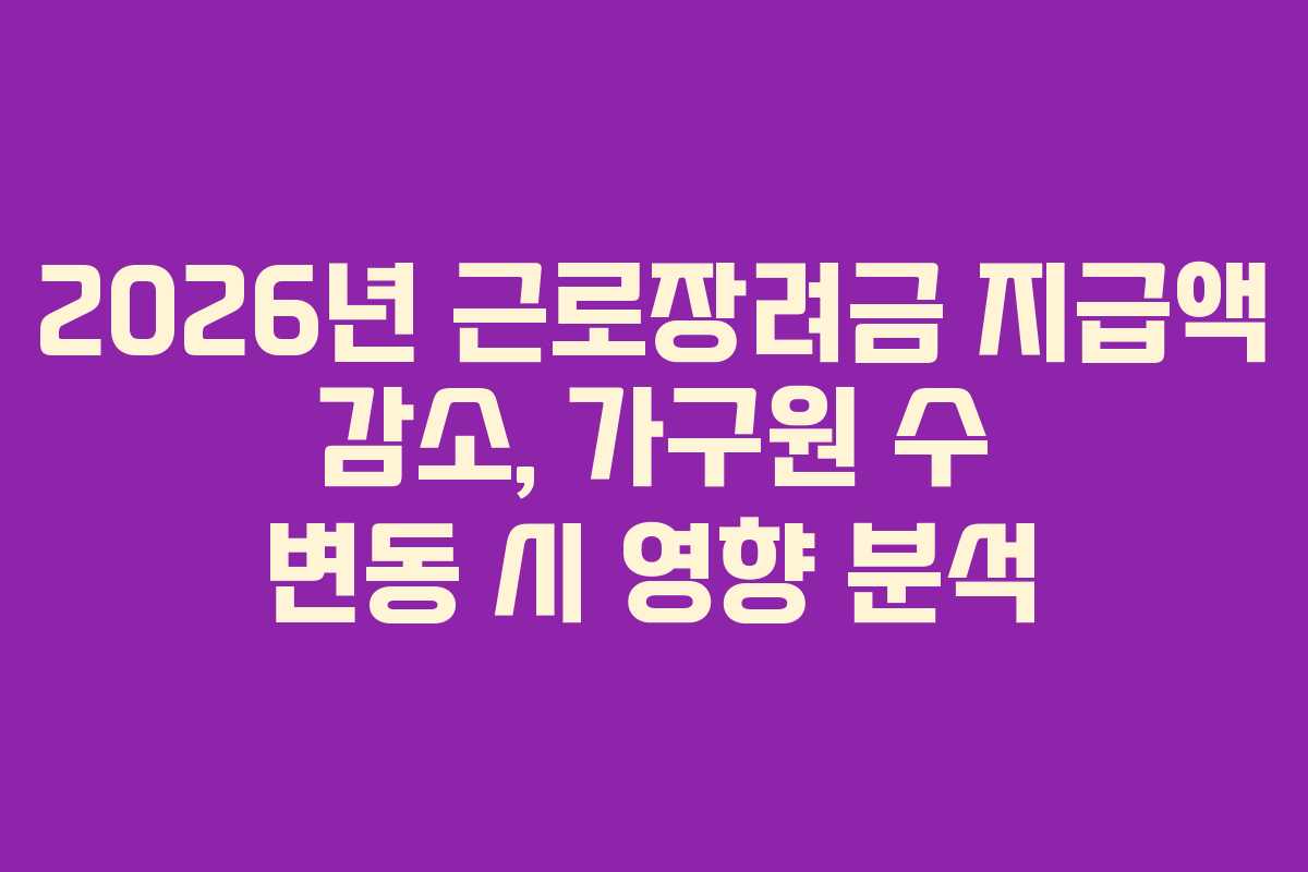 2026년에는 근로장려금의 지급액이 감소할 예정이라는 소식이 들려오면서 많은 가구가 불안감을 느끼고 있습니다. 특히, 가구원 수에 따라 지급받는 금액이 달라지기 때문에 이러한 변화가 가정의 재정적 안정성에 미치는 영향에 대해 심층적으로 분석해보려 합니다. 저는 개인적으로 이 제도가 제 안식처가 되어준 경험이 있습니다. 하지만, 이제는 다가오는 변화에 대한 준비가 필요하다는 사실을 절실히 느끼고 있습니다.