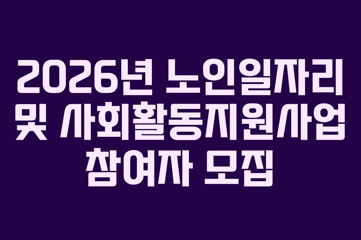 2026년 노인일자리 및 사회활동지원사업에 대한 참여자 모집 공고가 발표되었습니다. 본 사업은 노인의 사회참여를 증진하고 경제적 자립을 지원하기 위해 마련되었습니다.
