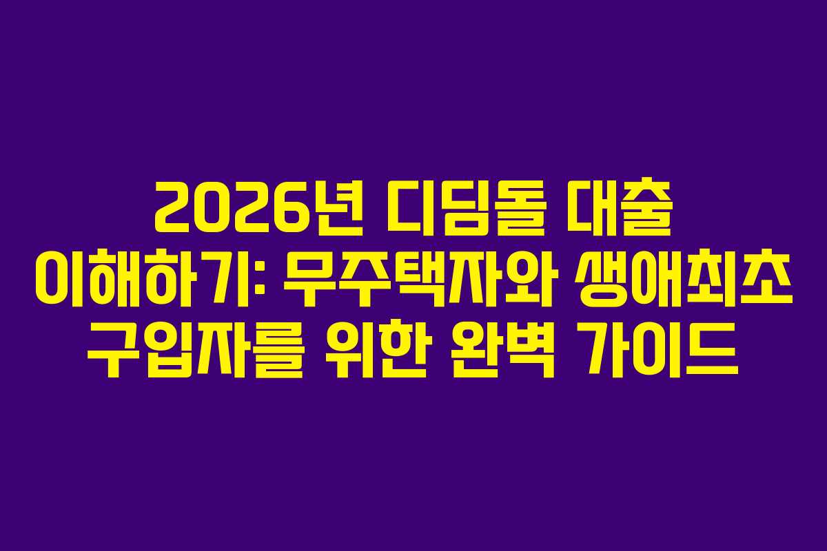 2026년 디딤돌 대출은 무주택자와 생애최초 주택 구입자에게 실질적인 혜택을 제공하는 금융 상품이다. 저금리로 장기 고정금리를 제공하는 이 대출은 주택 마련을 원하는 많은 이들에게 꼭 필요한 정보이다. 본 글에서는 2026년 디딤돌 대출의 조건, 신청 방법, 금리, 한도 등을 상세히 정리하여 독자들이 실수 없이 대출을 이용할 수 있도록 돕고자 한다.