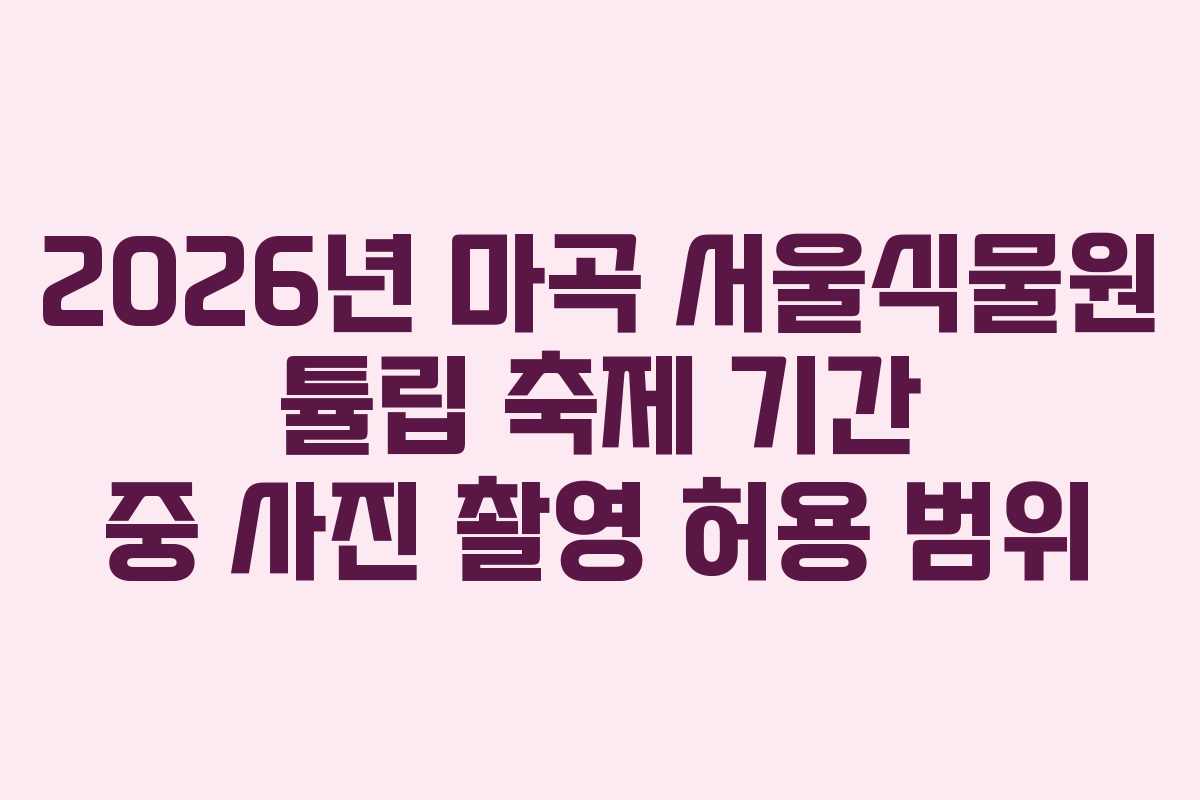 2026년 봄, 마곡 서울식물원에서 열리는 튤립 축제는 많은 이들의 기대를 모으고 있습니다. 아름답게 만개한 튤립을 배경으로 한 사진 촬영은 특별한 경험이 될 것입니다. 이 글에서는 축제 기간 중 사진 촬영이 허용되는 범위와 관련된 정보를 공유하며, 개인적인 경험을 통해 축제를 더욱 풍성하게 즐기는 방법을 제안하고자 합니다.