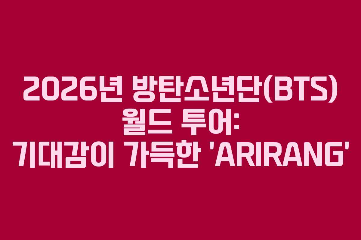 방탄소년단의 월드 투어는 ‘ARIRANG’라는 제목 아래, 한국의 전통적인 정서와 현대적인 요소가 결합된 컨셉으로 진행됩니다. 23개국 34개 도시에서 총 79회의 공연이 예정되어 있으며, 이는 K-팝 아티스트로서 단일 투어 중 가장 큰 규모입니다. 많은 팬들이 이 특별한 순간을 기다리고 있으며, 그 기대가 공연의 성공에 큰 영향을 미칠 것입니다.