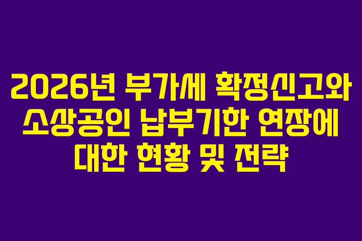 이번 포스팅을 통해 2026년 부가세 확정신고와 소상공인 납부기한 연장 관련 정보를 충분히 이해하고, 성공적인 신고를 위해 필요한 전략을 잘 세우시길 바랍니다.
