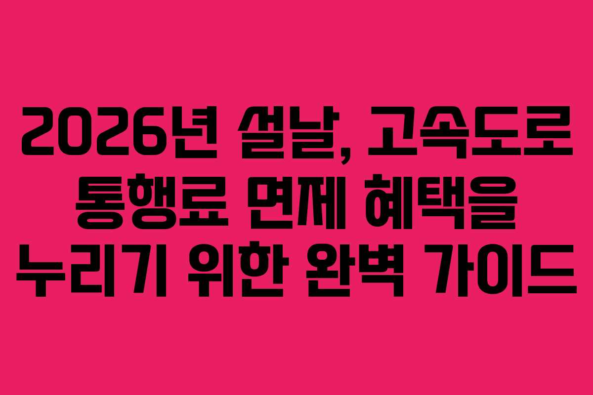 2026년 설 연휴 통행료 면제: 골든타임을 선점하라
