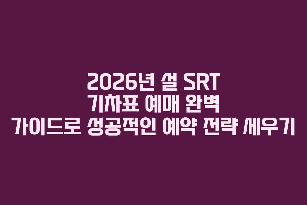 2026년 설 SRT 기차표 예매 완벽 가이드로 성공적인 예약 전략 세우기