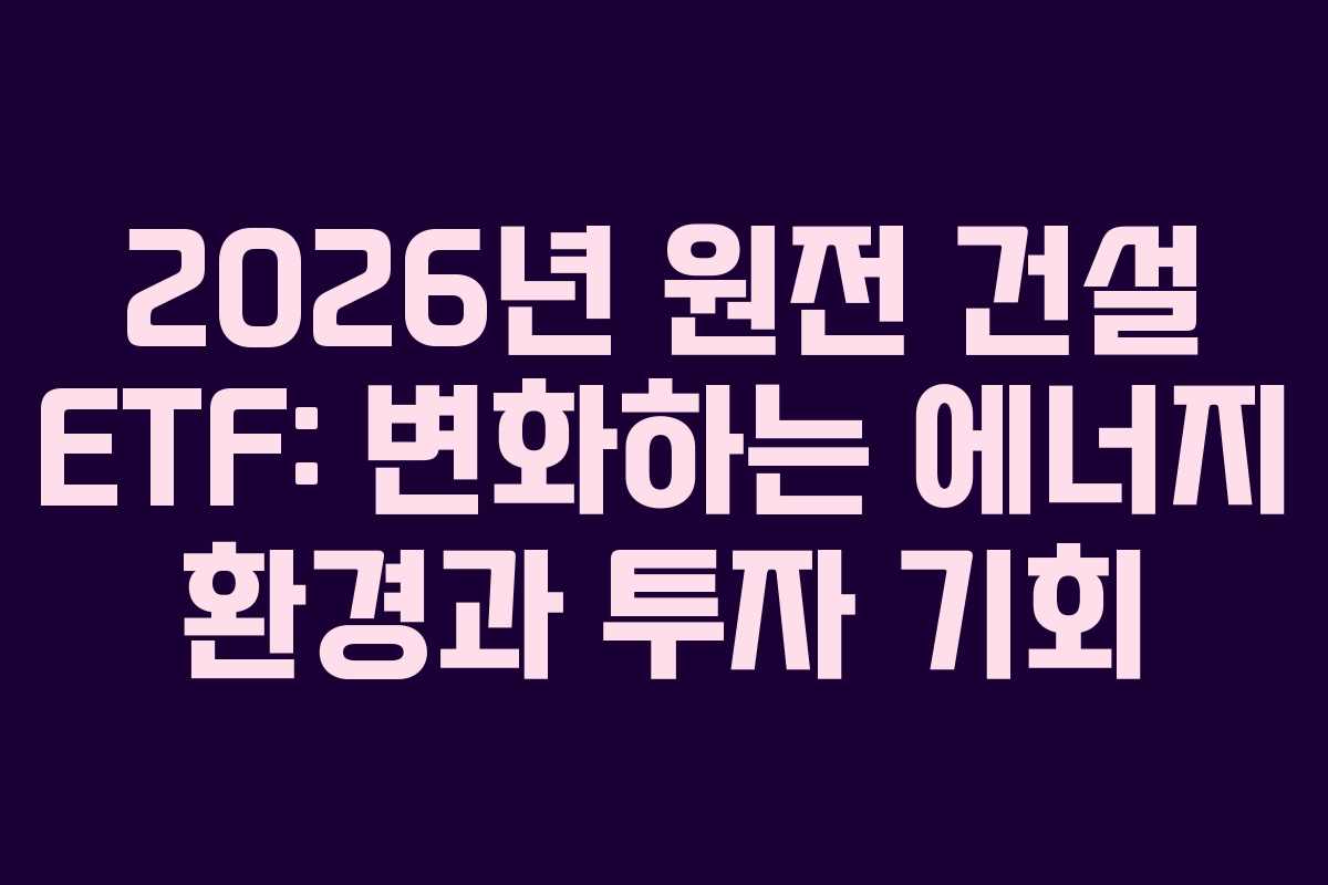 2026년 원전 건설 ETF: 변화하는 에너지 환경과 투자 기회