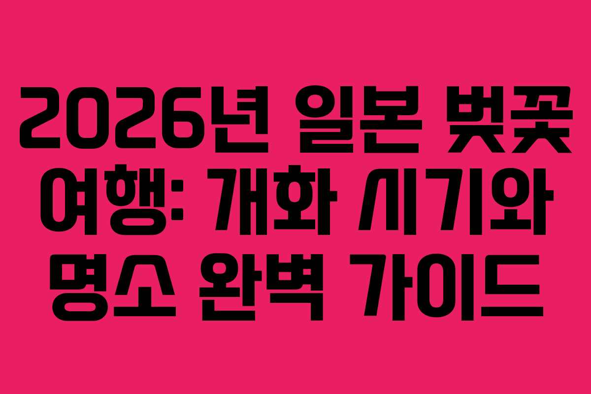봄이 다가오면 일본 벚꽃 시즌을 기대하는 사람들은 늘 많습니다. 2026년에도 많은 이들이 벚꽃 여행을 계획할 것이며, 이에 맞춰 개화 시기와 명소를 정리해 보았습니다. 벚꽃은 일본의 봄을 상징하는 꽃으로, 그 아름다움은 여행자들의 마음을 사로잡습니다.