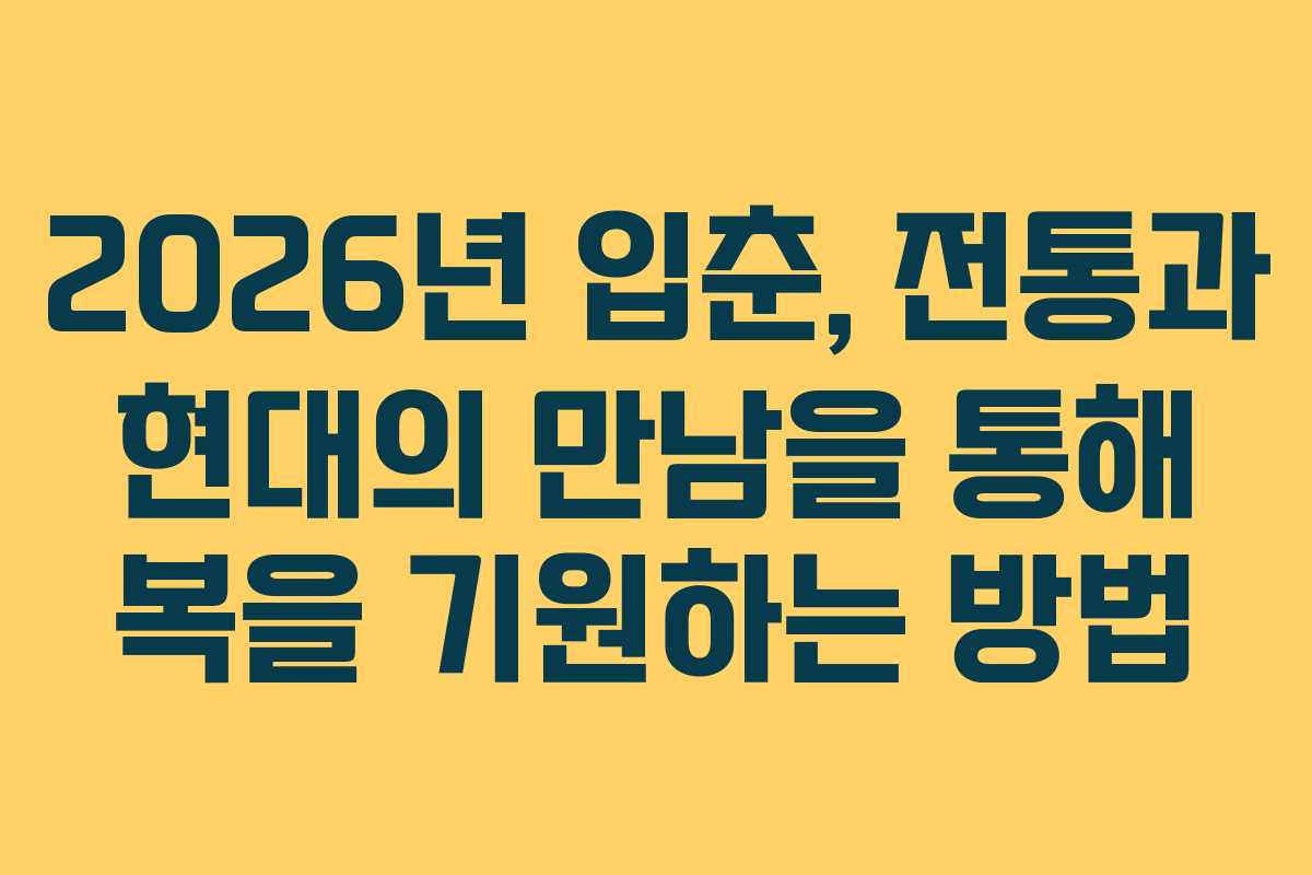 2026년의 입춘이 다가오면서 많은 사람들이 이 특별한 날을 어떻게 맞이할지 궁금해하고 있습니다. 입춘은 봄의 시작을 알리는 중요한 절기로, 전통적으로 많은 풍습이 이어져 왔습니다. 이번 글에서는 입춘의 의미와 함께 입춘첩을 붙이는 방법, 그리고 잊혀져 가는 입춘 풍습들을 정리해보겠습니다.