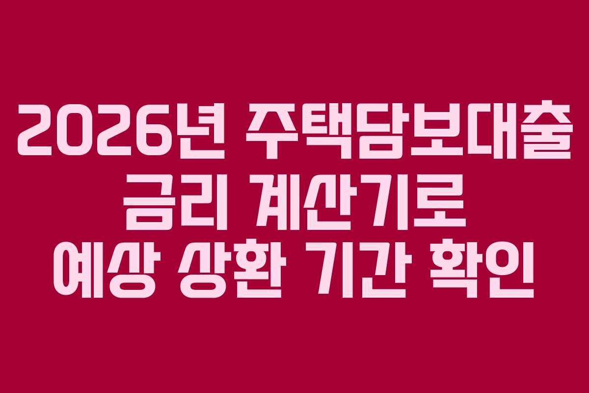 2026년 주택담보대출 금리 계산기로 예상 상환 기간 확인
