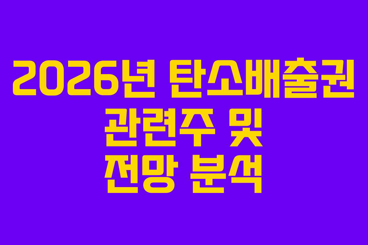 2026년에는 친환경 정책의 강화와 함께 탄소배출권 시장이 확대될 것으로 보입니다. 이에 따라 관련 기업들의 성장 가능성이 높아지고, 주식 투자에 대한 관심도 증가할 것으로 예상됩니다.