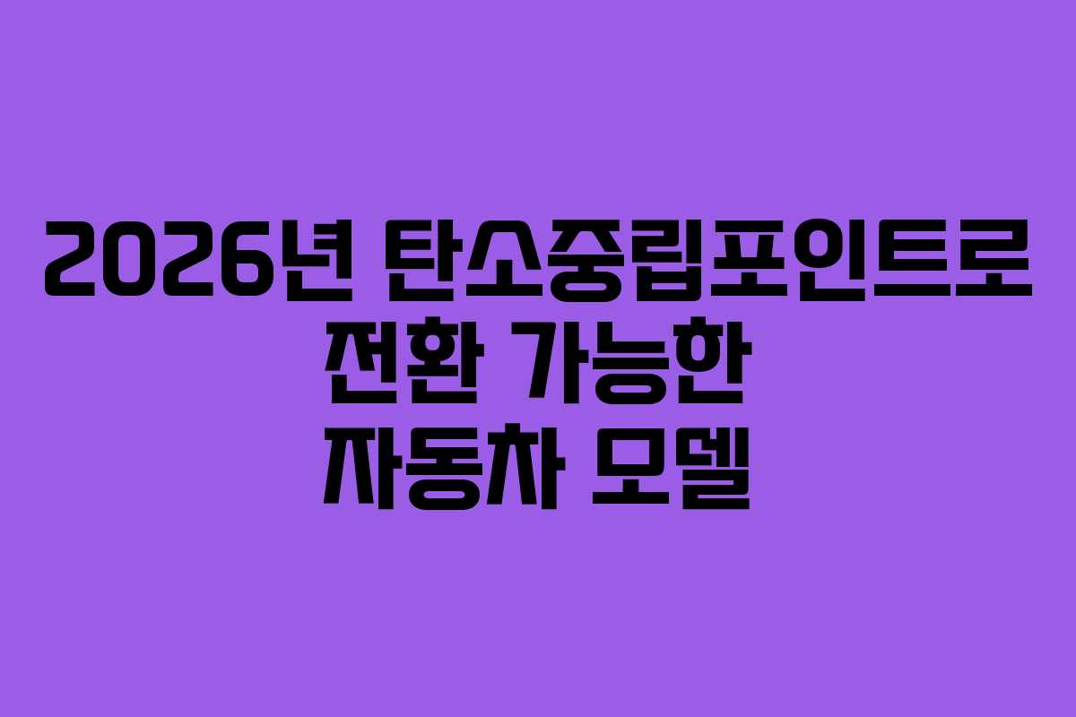 2026년에는 탄소중립포인트로 전환 가능한 자동차 모델들이 많아질 것으로 예상됩니다. 전기차와 하이브리드 차량을 포함해 다양한 옵션이 있고, 제조사들은 이러한 모델을 적극적으로 출시하고 있습니다. 제가 조사한 주요 제조사들이 출시한 모델 중 일부는 다음과 같습니다: