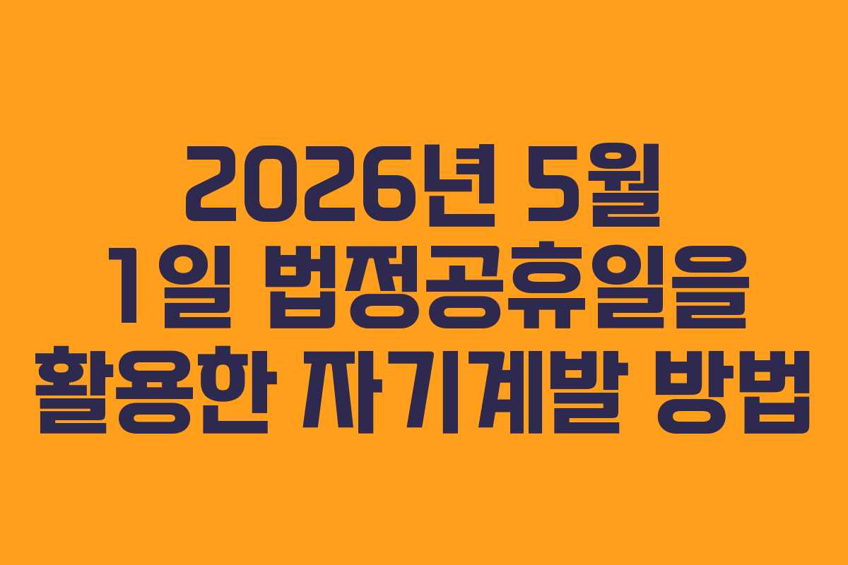 법정공휴일은 단순히 휴식을 제공하는 날이 아닙니다. 특히 2026년 5월 1일 노동절은 우리에게 자기 발전의 기회를 제공합니다. 이 날은 일상에서 벗어나 자신을 돌아보고, 새로운 목표를 설정할 수 있는 완벽한 시점입니다. 제가 과거에 겪었던 경험 중 하나는, 작년 5월 1일 가족과의 나들이 대신 혼자만의 시간을 가지기로 한 것입니다. 그날, 저는 평소 미뤄왔던 독서와 온라인 강의를 통해 제 꿈을 다시 한 번 되새기는 시간을 가졌습니다. 이러한 경험은 저에게 큰 영감을 주었고, 여러분에게도 같은 기회를 제공하고자 합니다.