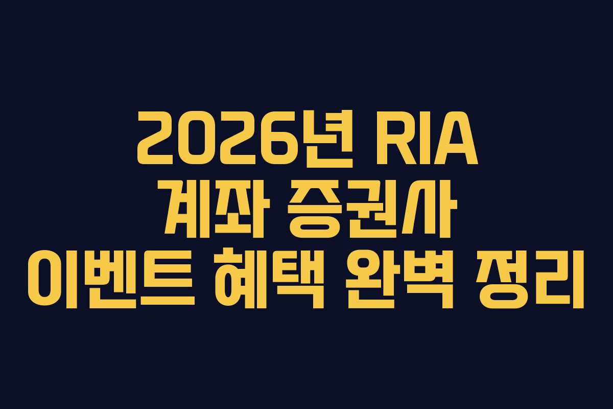 2026년 RIA 계좌 이벤트 – 대형 증권사 혜택 비교