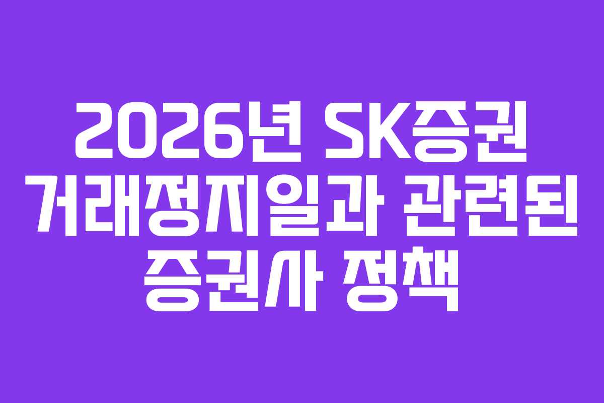 2026년 SK증권의 거래정지일에 대한 정보는 많은 투자자들에게 중요한 이슈로 다가옵니다. 특히 주식 거래를 고려하는 사람들에게는 더욱 신경 써야 할 부분입니다. 저 역시 몇 년 전 SK증권과 관련된 정책을 잘 알지 못해 투자에 어려움을 겪은 경험이 있습니다. 이번 글에서는 2026년 SK증권 거래정지일과 그에 따른 증권사 정책을 상세히 다루어 보겠습니다.