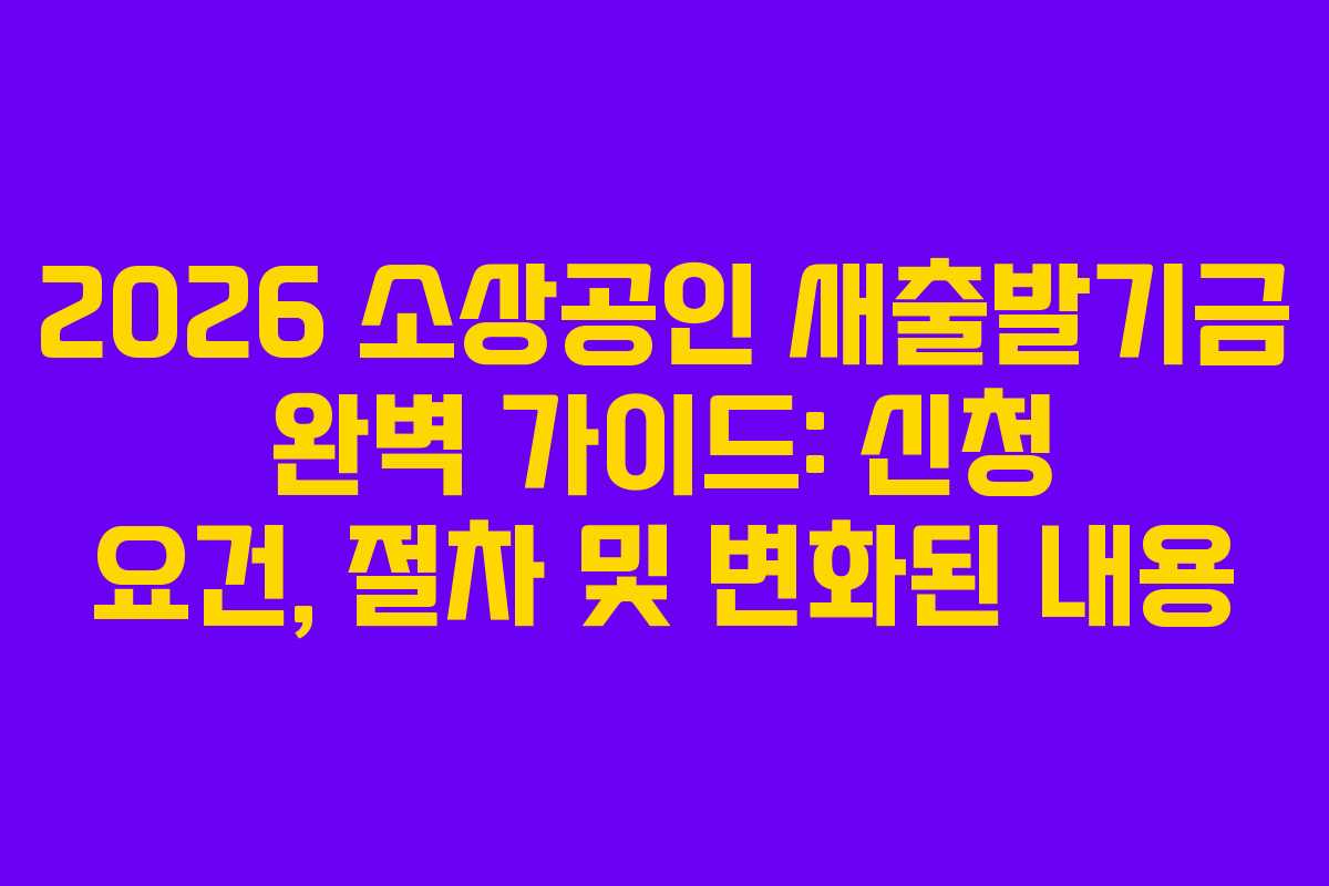 2026년 소상공인 새출발기금은 과중한 채무로 어려움을 겪고 있는 소상공인과 자영업자에게 도움을 주기 위한 공적 프로그램입니다. 본 가이드는 신청 절차, 요건, 필수 서류, 그리고 2026년에 달라진 사항들을 상세히 설명하여 독자들에게 실질적인 정보를 제공하고자 합니다. 소상공인들에게 빚은 생존 문제와 직결되며, 본 프로그램은 그러한 부담을 덜어줄 수 있는 중요한 기회로 작용할 것입니다.