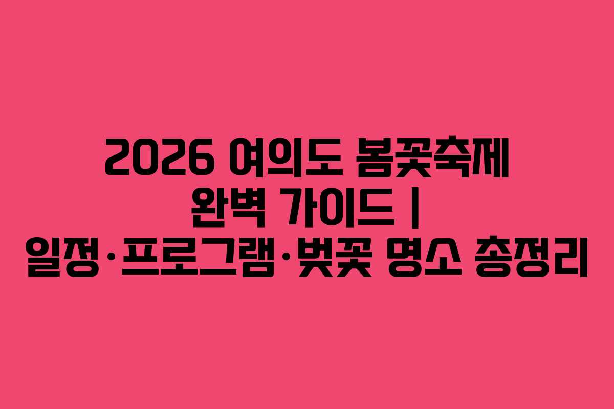 2026년, 서울의 봄을 대표하는 여의도 봄꽃축제가 다시 한 번 화려하게 열립니다. 수많은 관람객이 찾는 이 축제는 벚꽃과 다양한 프로그램, 맛있는 먹거리를 동시에 즐길 수 있는 기회를 제공합니다. 여의도 봄꽃축제는 매년 서울의 봄을 상징하는 행사로 자리 잡고 있으며, 올해 역시 기대에 가득 찬 일정으로 찾아옵니다.