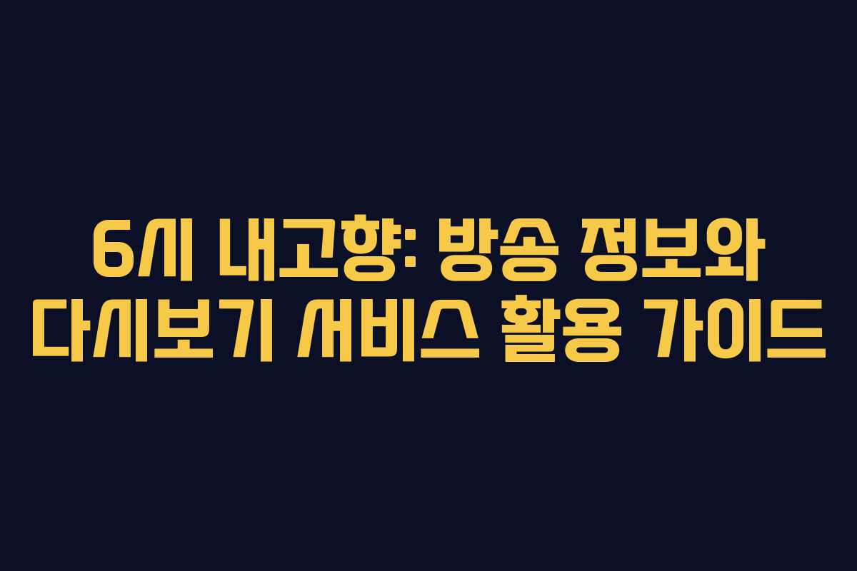 6시 내고향은 많은 시청자들에게 사랑받는 프로그램으로, 다양한 방송 정보와 다시보기 서비스를 제공합니다. 본 가이드는 {asof_date} 기준으로 방송 정보 확인 및 다시보기 서비스를 효과적으로 활용할 수 있는 방법을 안내합니다.