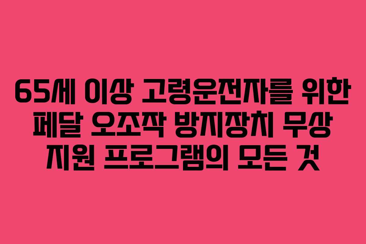 65세 이상 고령운전자를 위한 페달 오조작 방지장치 무상 지원 프로그램의 모든 것