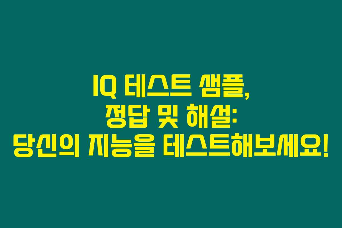 IQ 테스트가 궁금하신가요? 아래를 읽어보시면, 제가 경험한 다양한 IQ 테스트 샘플과 함께 정답과 해설을 제공해 드립니다. 이 글에서는 특정 샘플 문제에 대한 해설과 함께, 테스트 결과를 해석하는 방법에 대해 자세히 알아보려고 합니다. 뇌를 한 번 풀가동시키고 싶으시다면, 주목해 주세요!