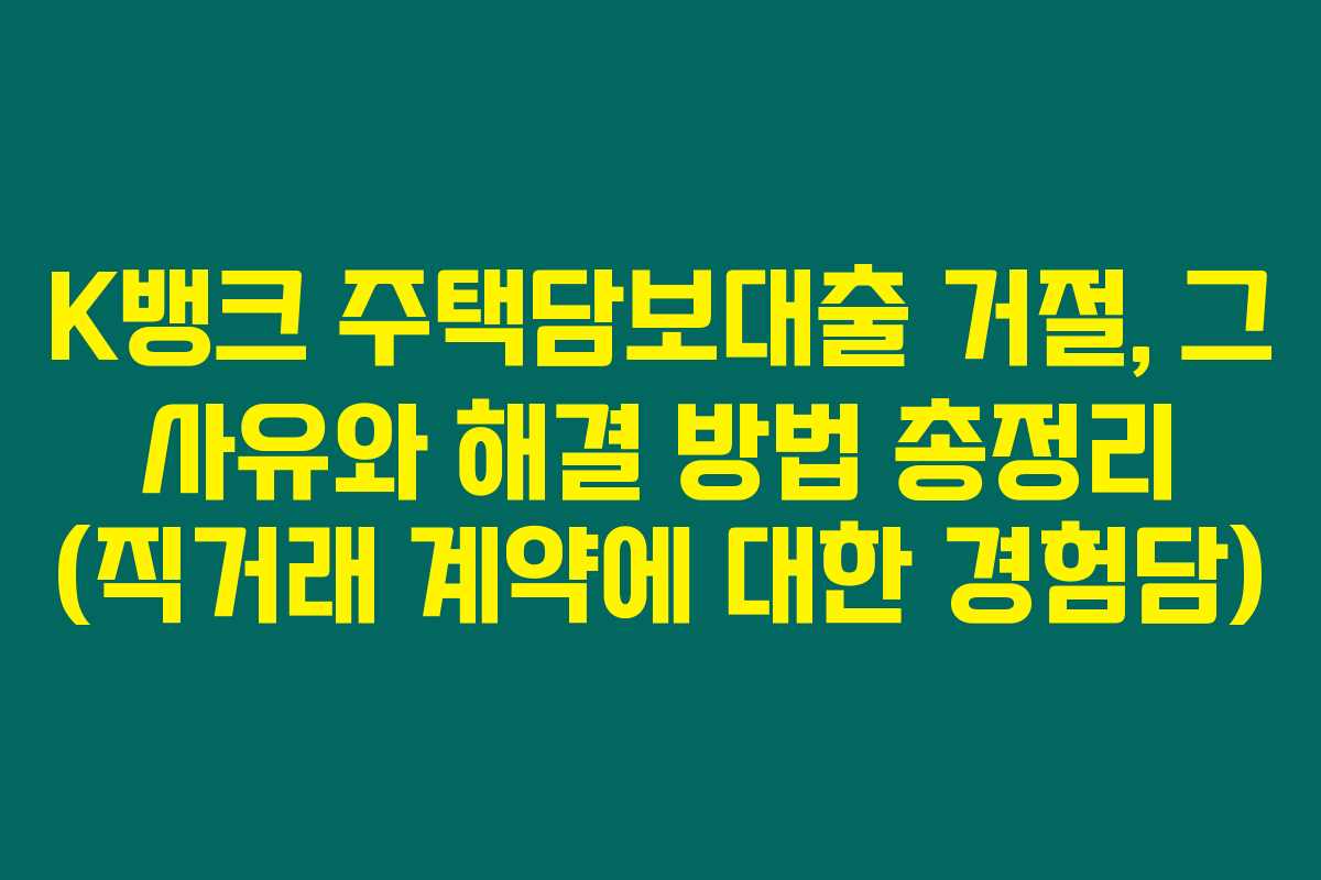 K뱅크에서는 부동산을 통하지 않은 직거래 매매계약이 주요 거절 사유입니다. 직거래 계약은 안전성 문제로 인해 명확한 조건이 필요합니다.