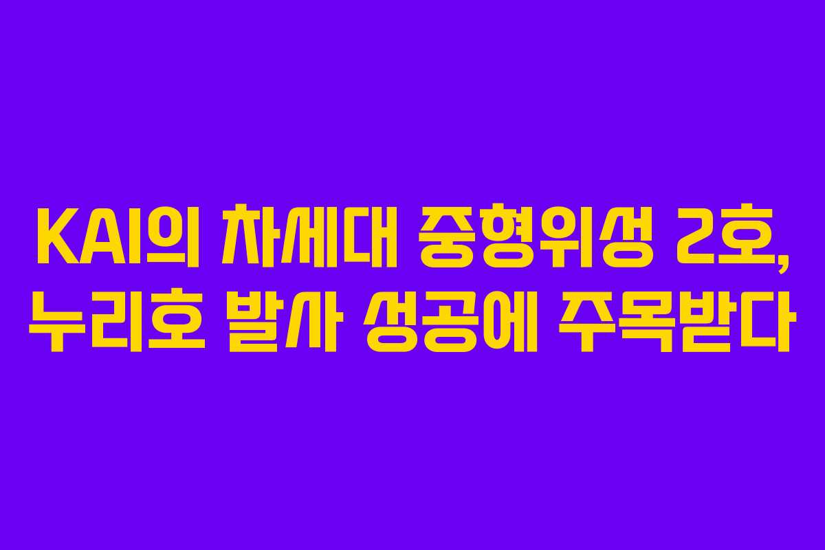 한국항공우주산업(KAI)이 주관하는 차세대 중형위성 2호와 관련하여 최근 누리호의 3차 발사가 성공적으로 이루어져 주목받고 있습니다. 이번 발사는 KAI가 우주 사업에서 중요한 역할을 수행하고 있다는 점에서 큰 의미를 가지고 있습니다.