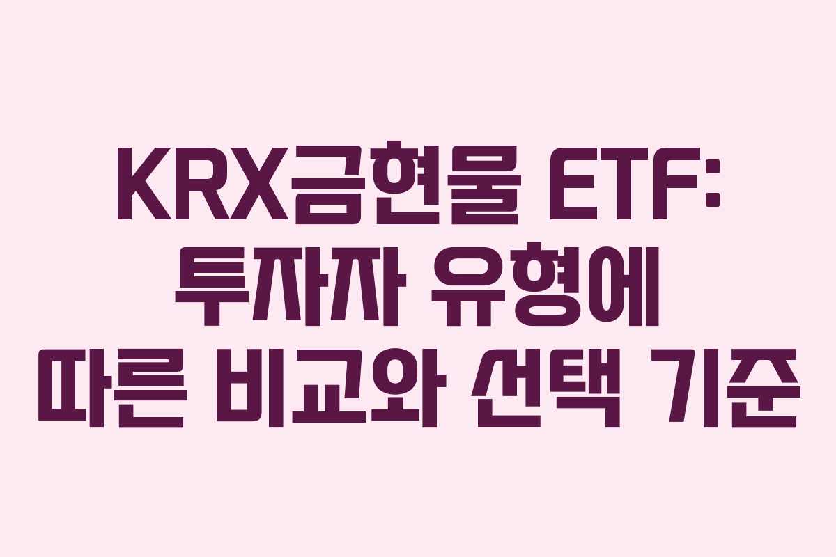 KRX금현물 ETF: 투자자 유형에 따른 비교와 선택 기준